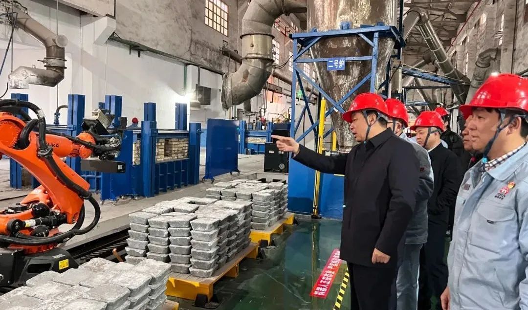 陳得信在精細(xì)冶金廠自動(dòng)化生產(chǎn)線調(diào)研氧化銻生產(chǎn)情況
